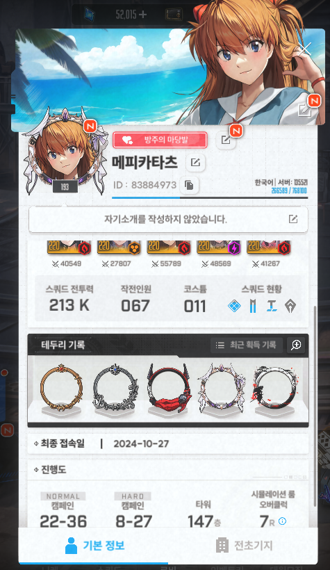 처음엔 별 생각 없이 천천히 할 생각으로 시작을 했는데 친구의 엄청난 만류로 계정을 새로 파서 당시 픽업이던 수쿠라 + 동탄D를 들고 시작했다.