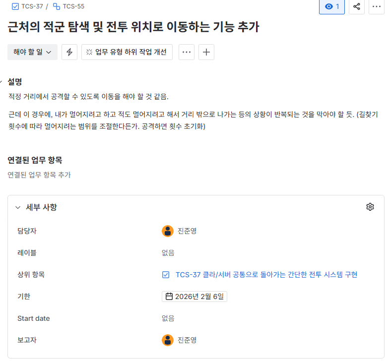 다만, 근처의 적군을 탐색 및 이동하는 경우 예외 상황을 처리해야 할 것 같아 해당 내용을 티켓에 적어두었다.