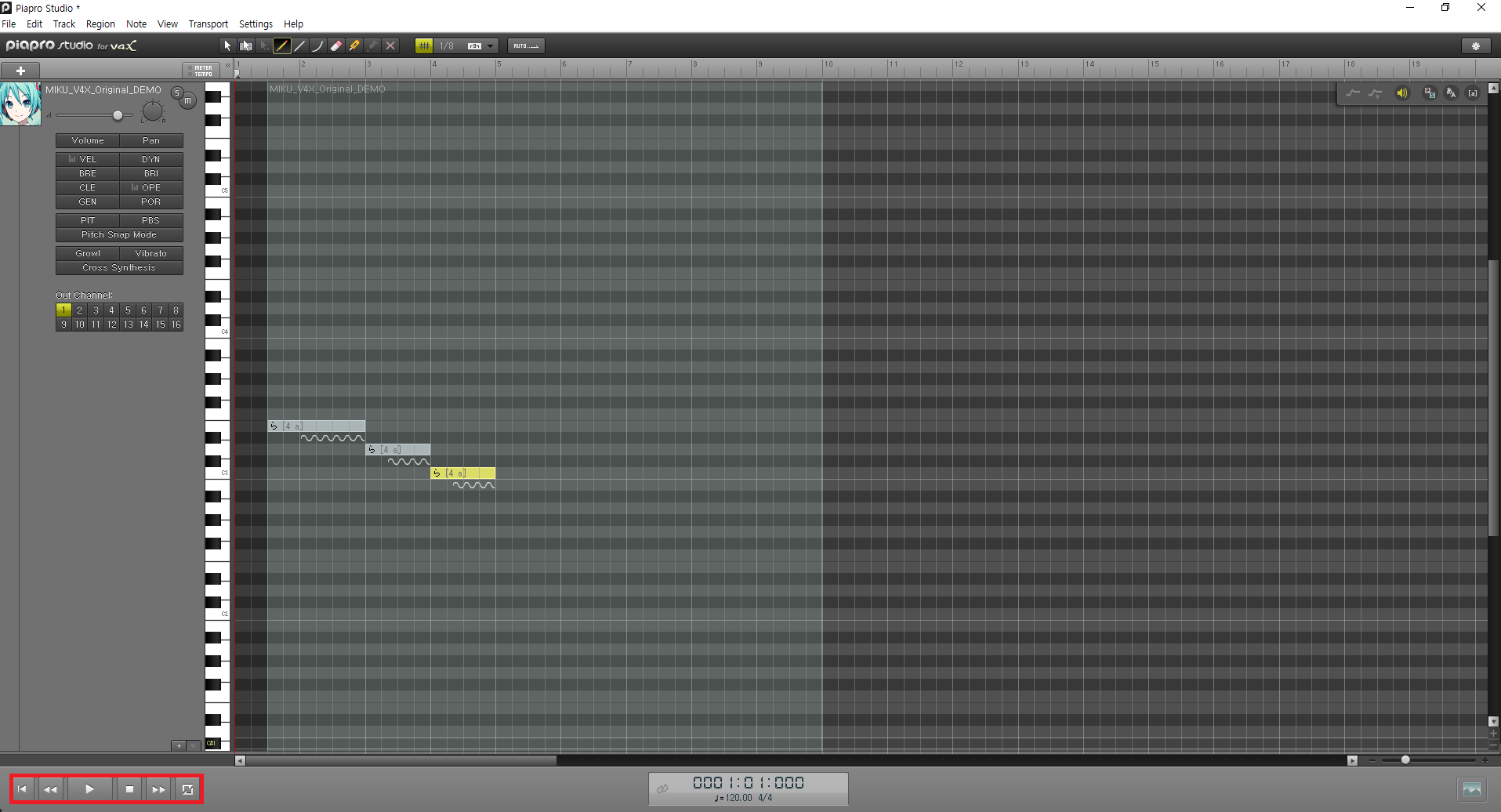5. 하단의 꾸물거리는 건 바이브레이션인데, 좌우로 길이를 늘릴 수도 있고 더블클릭으로 바이브레이션의 스타일을 바꿀 수도 있다. 이외에도 Singing Style 등을 바꿀 수도 있는데 아직 잘 활용해보지는 못했다.