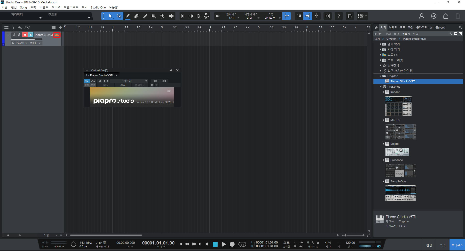 Studio One으로 돌아가보면 트랙 부분이 비어있는데, 재생하면 piapro studio과 같이 재생이 되어서 노래는 정상적으로 들린다. 악기 등은 Studio One에서 넣어줘야하는 것 같다.