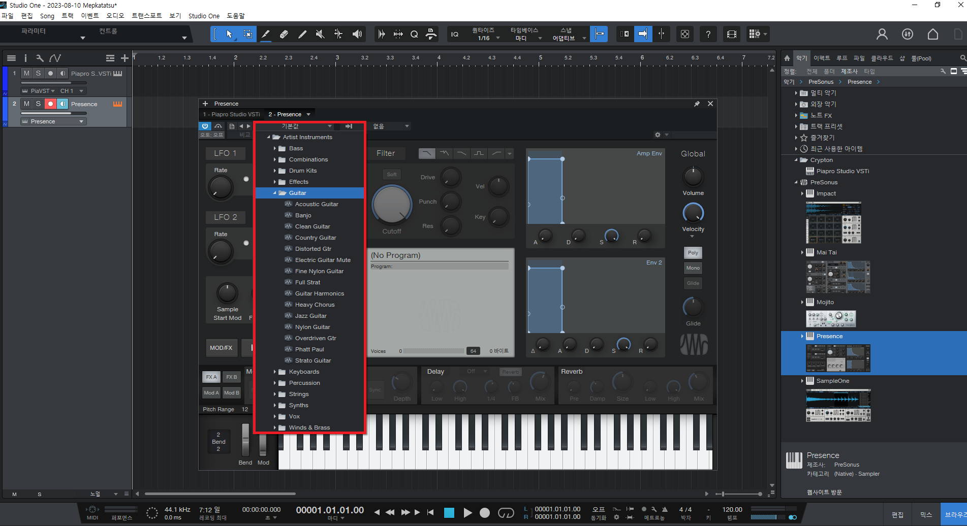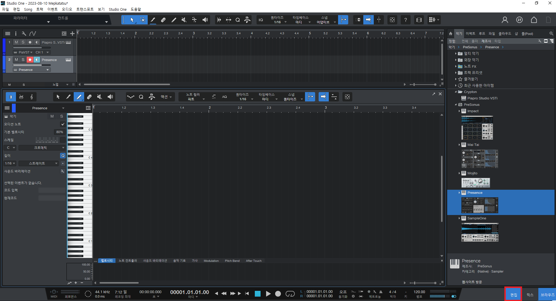 이번에는 우측에서 Presence라는 악기를 드래그해주겠다.